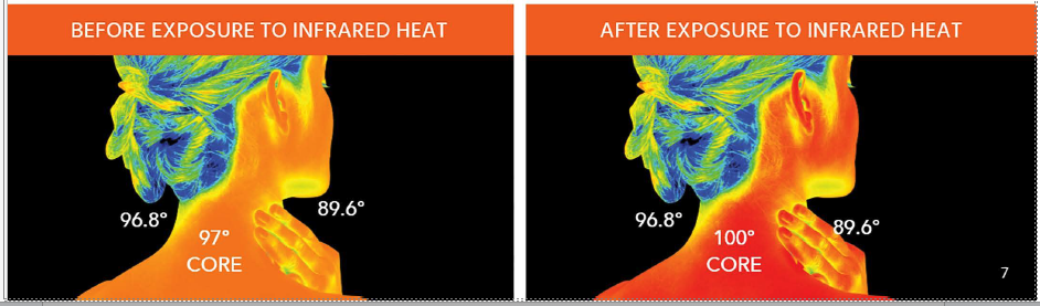 Infrared heats the body directly rather than simply heating the air.